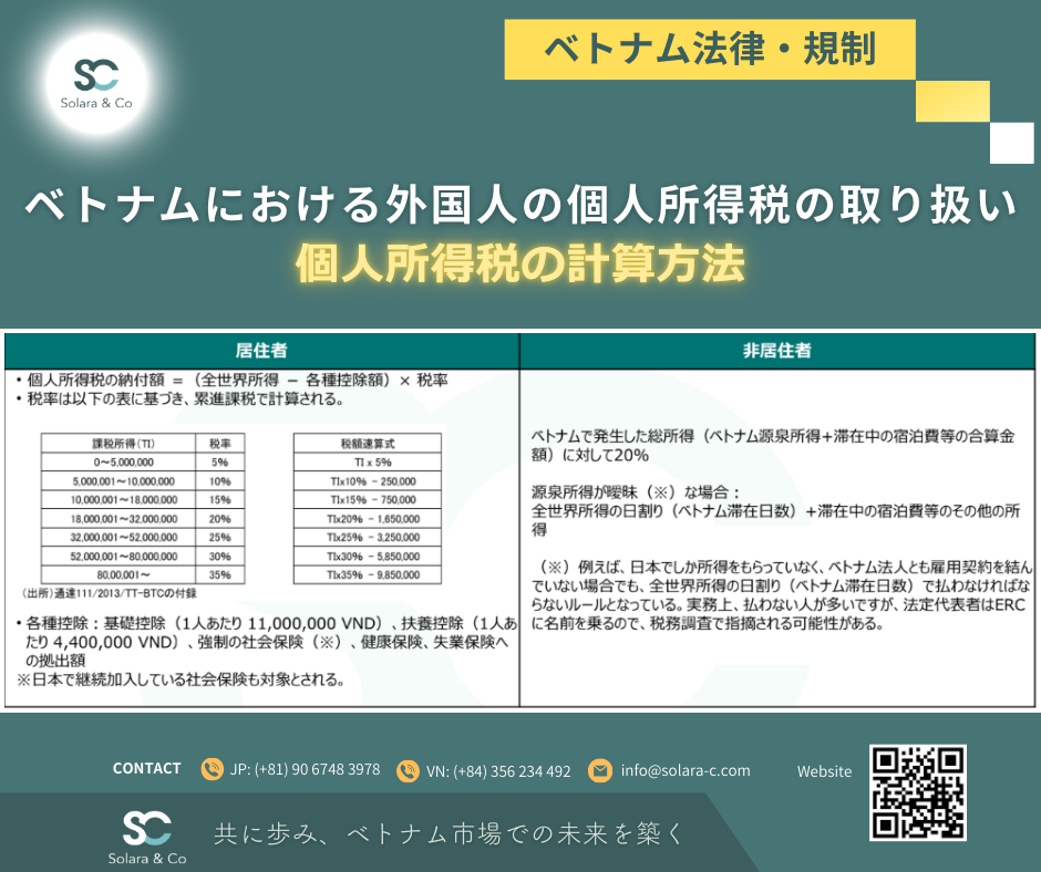 本記事では、ベトナムにおける外国人の個人所得税(PIT)の基本的な計算方法、居住者・非居住者の判定基準をご紹介します。